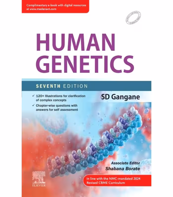 HUMAN GENETICS SEVENTH EDITION The seventh editcn of ths took has been updated in accordance with the competency-based cumculum of Genetics as per the revised gadelines of National Medical Commission (NMC) introduced n 2024 By focusing on a concise format, the bock emphasizes key topics and essential knowledge that students need to master, making it a valuable tool fcr the r stud es. New to This Edition Sgnificant content enhancements to create a more engaging and effective leamng experience for undergraduate students, preparing them fcr the challenges they will face n their medical careers. Insert on of new topics cn telcmere and ageing in molecular genetics, Jacobsen syndrome, Warms syndrome, cell-signalling pathways in developmental genetics, Chectak-Higashi syndrome, Job syndrome, autommune lymploproliferatve syndrome (ALPS), X-linked lymphoprolderative (XI .), ataxia-telangectase, next generaton sequencing (NGS). Updated chapters cn Cytogenetcs, Chromosomal Aberrations, Developmental Genetics, Immuncgenetcs, Prenatal Degncsis. Salient Features Text is amply illustrated KM various learning ads such as relevant line degrams: photographs, flowchars, and tables to facilitate quick assim laton and greater retention of knowledge. Summary box in chapters high] ghkng topes to mprove the daffy for subject and helps revision before examination. Questions at the end of chapters along pith answers for self-assessment to evaluate the level cf triderstanding and memory recall of the students Prepares students for both theory and vva voce. Online Resources at www.medenact.com Complimentary access to f4il etook Animations on various topics enable learners to grasp concepts more thoroughly and prepare for exams.