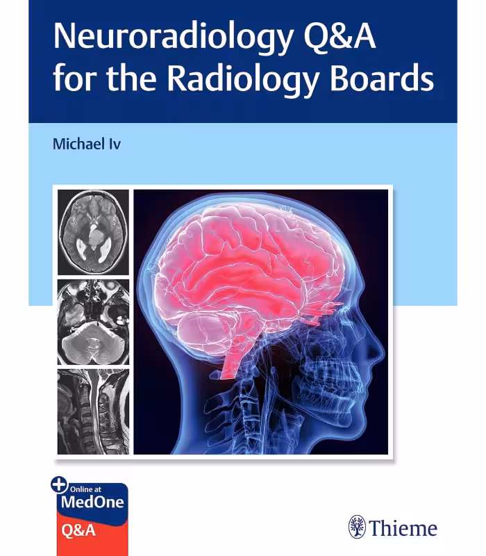 The quintessential case-based review to prep for and master ABR exams The American Board of Radiology Core, Certifying, and Neuroradiology Subspecialty Exams test an individual’s knowledge and understanding of anatomy, pathophysiology, and physics concepts important in diagnostic imaging. For many residents, fellows, and practicing radiologists, preparation for these exams involves several months to years of reading text, interpreting images, and answering countless questions. Neuroradiology Q&A for the Radiology Boards, edited by neuroradiologist Michael Iv, features contributions from other academic neuroradiologists at Stanford University who are passionate about education and paying it forward. The primary goals of this book are to help current and future generations of radiologists ace the neuroradiology section of these exams and improve their clinical skills. The reader-friendly compilation of cases, questions, and answers reflects the invaluable insights of neuroradiologists who recently experienced the arduous journey of studying and sitting for the ABR exams. The book consists of a collection of 100 standard difficulty and challenging cases organized by the categories of brain, spine, and head and neck. A total 70 cases covering a wide range of brain conditions and diseases include 20 challenging cases. Spine and head and neck pathologies are represented by 15 cases each, both of which include 5 challenging cases. All of the cases illustrate specific pathologies and teaching points likely to be encountered on the exams and in the reading room. Key Features *Cases encompass every area of neuroradiology and cover the full age spectrum *Consistently formatted cases feature two or three high-yield images, followed by three multiple choice questions that assess comprehension of imaging diagnosis, histopathology, and management *Detailed explanations for correct and incorrect answers enhance understanding and acquisition of knowledge This must-have study guide will help radiologists prepare for and ace the Core, Certifying, and/or Neuroradiology Subspecialty ABR exams and improve their clinical knowledge, which ultimately leads to improved patient care. This print book includes complimentary access to a digital copy on https://medone.thieme.com.