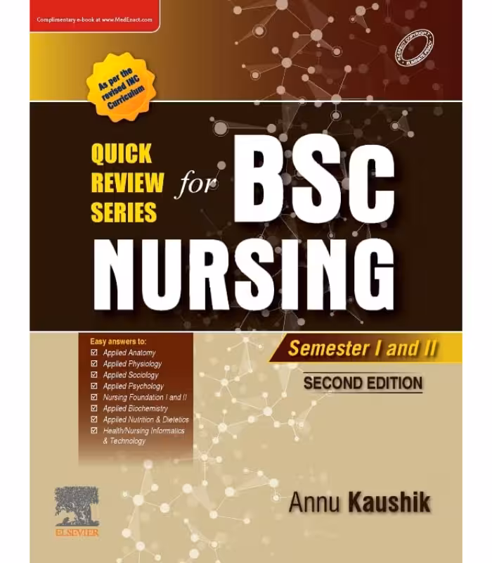 Quick Review Series (QRS) for BSc Nursing 1st Year, 2nd edition is an extremely exam-oriented book. The content has been developed and arranged in a manner so the entire INC syllabus has been covered. The subject content has been divided unit wise and according to the weightage of marks in each unit. It is well-illustrated with simple reproducible diagrams and flow charts. To aid in quick learning before examinations, memory aides and mnemonics have also been added. The book will serve the requirements of BSc Nursing 1st year students to prepare for their examinations. Key Features Content presented in well-classified sections All question types asked in the University exams are addressed: Long essays, Short essays and Short notes Clearly describes how to attempt a question in the exam Suitable number of tables and flow charts according to the need of the questions Reproducible diagrams in Anatomy and Physiology sections