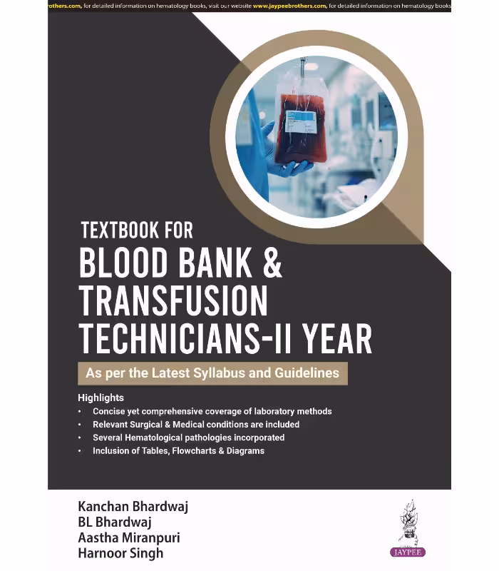 The course in blood transfusion is a newly introduced paramedical course and this book is according to the prescribed syllabus. This textbook gives an overview of every aspect of blood banking. It will help the paramedical students to get equipped with knowledge about blood banking. This course will provide expert and well-qualified blood bank technicians who will have complete knowledge about this field. This course will fill the gap of shortage of technicians in the area of fast-growing blood banking across the country. The second year covers all the areas ranging from relevant surgical & medical conditions, nursing procedures, common laboratory tests, & serology related to blood transfusion and diseases of hematology. It also includes details of blood donation and its processing, drugs used in blood transfusion, basic life support, and in emergency. A section of community involvement in transfusion is also included in this textbook.